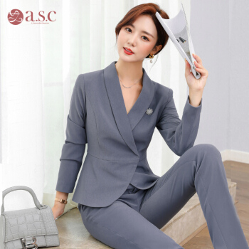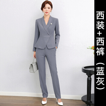 艾尚臣小西装女2020秋季新款高端时尚职业装商务气质总裁西装正装西服面试工作服 灰蓝色西装+西裤 S |