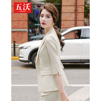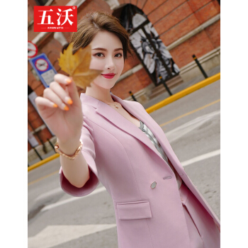 五沃 职业装女装套装小西装女修身设计感小众韩版时尚气质名媛西服 单件浅绿色外套 L |