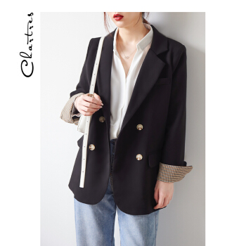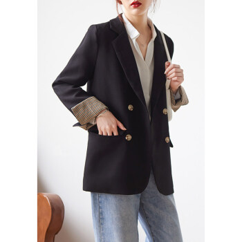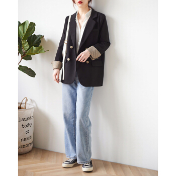 【新品5折 149.5元】黑色小西装女 2020秋韩版小外套小个子网红短款上衣休闲西服外套X445 黑色 M |