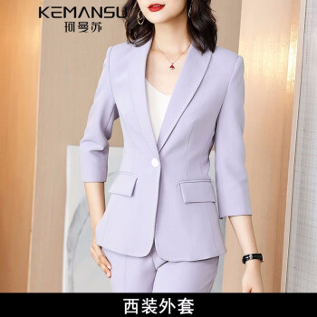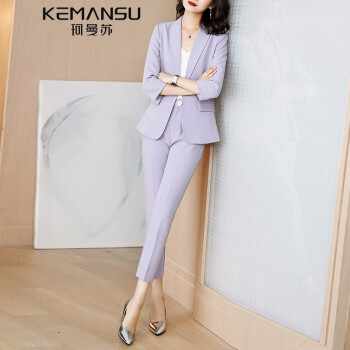 珂曼苏品牌女装紫色小西装套装女2020年秋季气质休闲职业西服外套韩版名媛小香风 西装+裤子 S |
