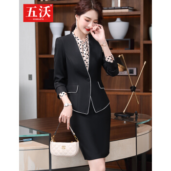 五沃 职业装女装套装小西装女神范总裁时尚修身工作服英伦风ol气质商务正装西服 单件黑色西装 L |