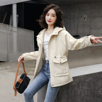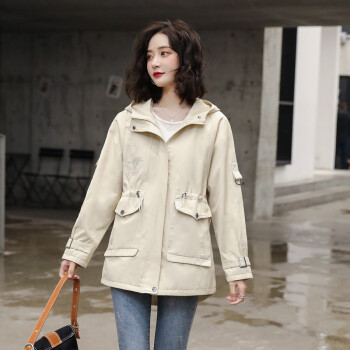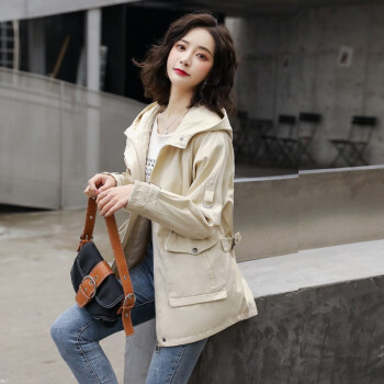 留和 短外套2020秋装新款女装时尚休闲连帽女士风衣外套女F6607 米色 L |