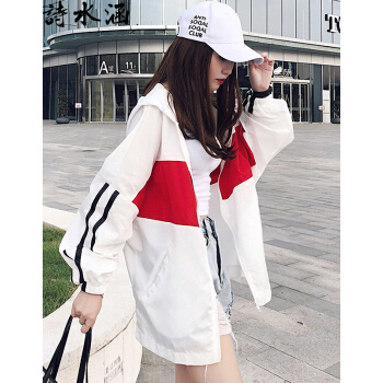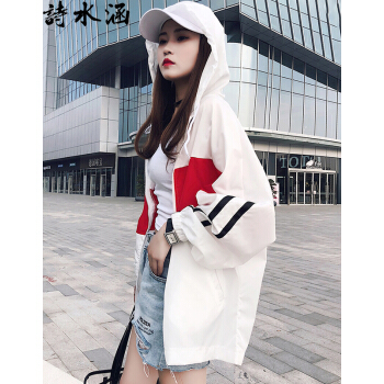 诗水涵 防晒衣女2020夏季新款韩版中长款防晒服女宽松学生百搭薄款外套女装时尚户外开衫棒球服防晒衫女 红色 XSS |