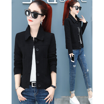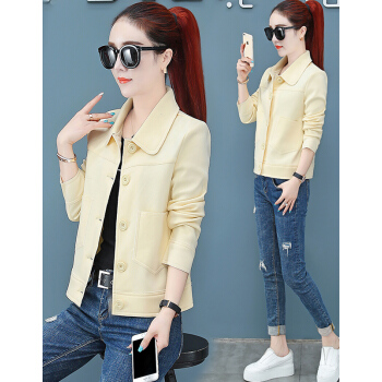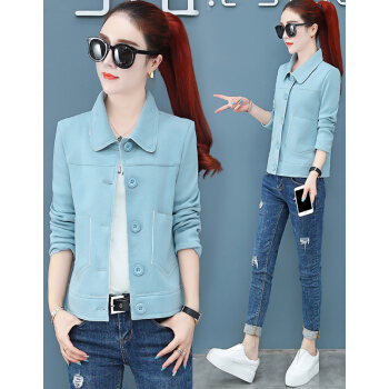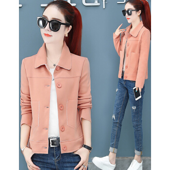 婪澈外套女2020春秋新款女装潮韩版宽松秋短款夹克工装女士小香风女上衣 粉桔 L |