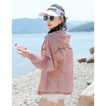 美连诚防晒衣女2020夏装宽松薄款短款防晒服长袖空调衫冰丝透气女士短外套 8601粉红 L |