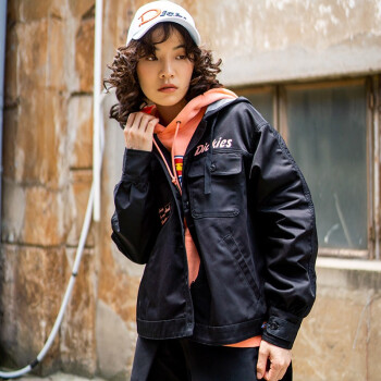 Dickies字母印花连帽夹克 秋季新品女式多袋燕尾薄外套DK008106 黑色 L |