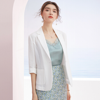 洛诗琳2020夏装新款纯色小外套休闲百搭职业风西装女 付款4天发 蓝色 XL |