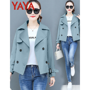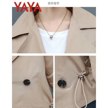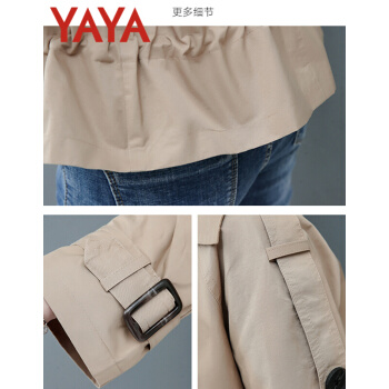 鸭鸭服饰yaya小个子外套女春秋季2020新款夹克休闲上衣春秋装百搭短款女士风衣 卡其色 L |