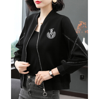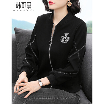 【精选好货】 韩可思棒球外套女2020春秋季新款女装女士短外套棒球服妈妈装春秋休闲宽松外穿上衣 黑色 请拍正确尺码 |