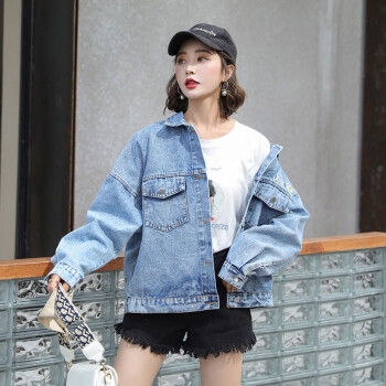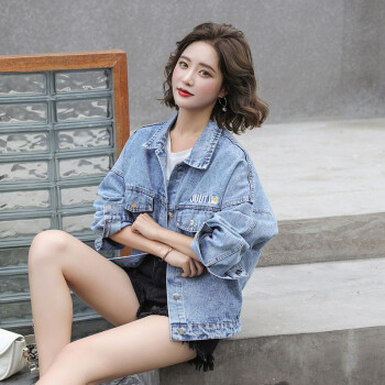 淑蔓婷牛仔外套女春秋2020新款宽松韩版bf百搭学生复古网红刺绣上衣ins 浅蓝色 M |