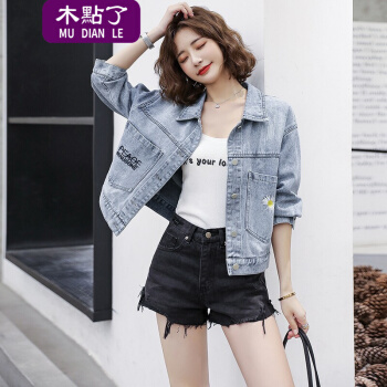 木點了 牛仔外套女2020秋新款时尚潮流舒适长袖宽松休闲气质短外套牛仔衣女2081A 图片色 M |