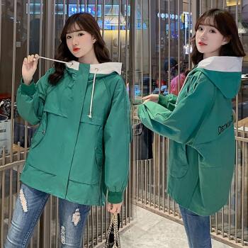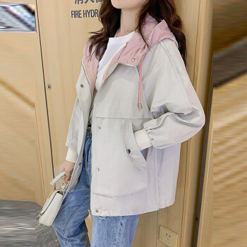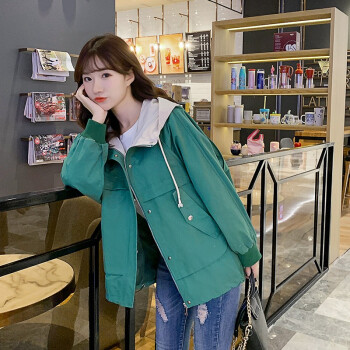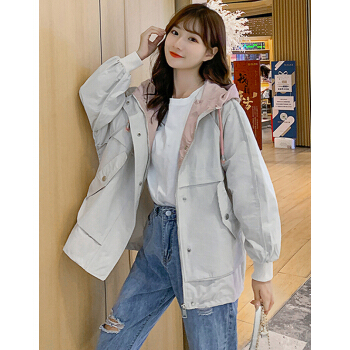 萱蓝外套女春秋装2020韩版新品宽松百搭森系短款棒球服休闲连帽工装上衣风衣潮2307 米色 L |