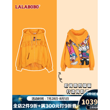 【2020秋季新款】LALABOBO鬼马JOKER宽松落肩连帽卫衣短外套|L20C-WSTS11 黄色 XS |