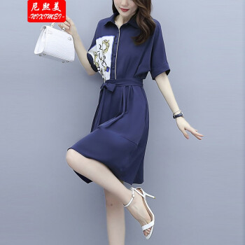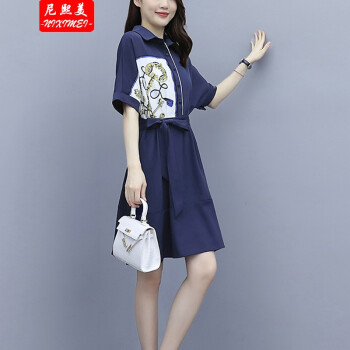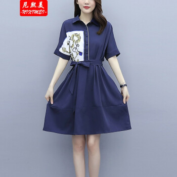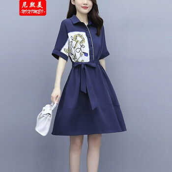 尼熙美 大码女装胖mm2020夏装新款气质胖妹妹宽松显瘦遮肚子加肥加大时尚拼接衬衫遮肉连衣裙 蓝色 2XL 建议135-150斤 |