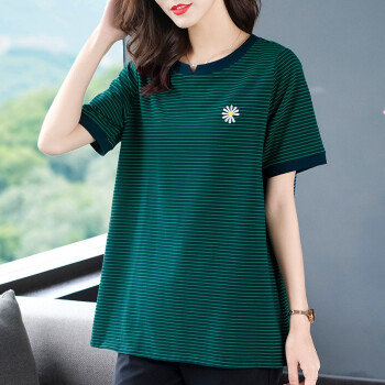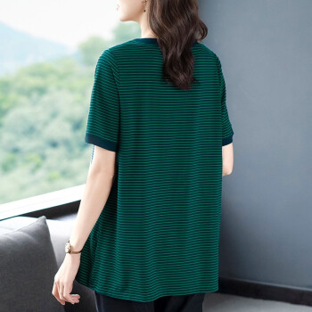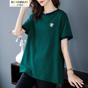 木棉林胖妹妹mm宽松t恤女韩版加大码女装2020新款夏装200斤显瘦条纹中长款洋气上衣L202733 蓝底绿条 3XL建议160-180斤 |