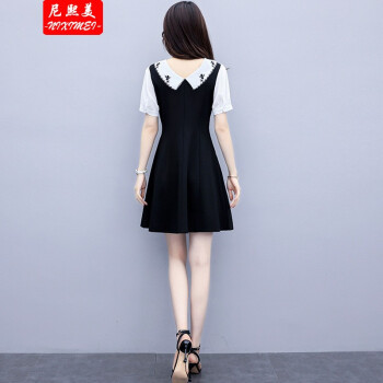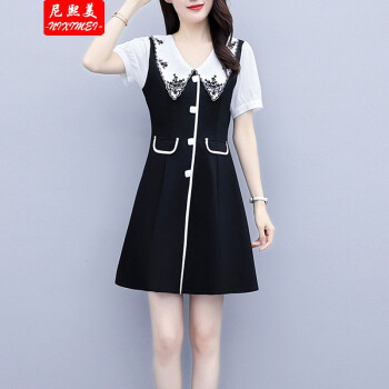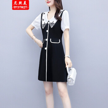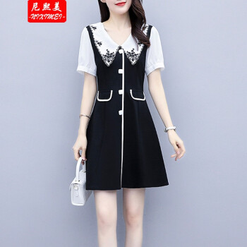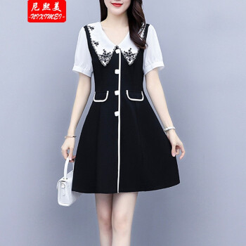 尼熙美 大码女装胖mm2020夏装新款胖妹妹遮肉宽松显瘦复古收腰遮肚子加肥加大码气质连衣裙 黑色 2XL 建议130-145斤 |