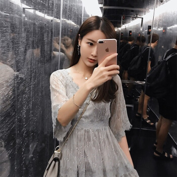 可馨怡 胖妹妹夏装2020胖人女装新款显瘦遮肚子连衣裙大码女装胖mm雪纺仙女裙200斤 灰色 XXXXL(建议150-175斤左右) |