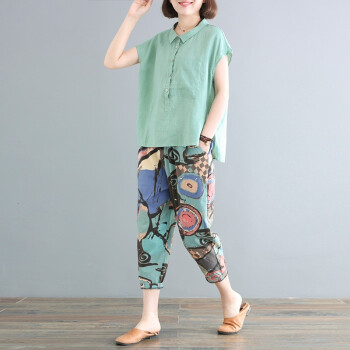 潘歌大码女装夏装2020新款韩版宽松大码遮肉棉质文艺范休闲套装女两件套P9390 豆沙红 30天质保 请选合适尺码 |