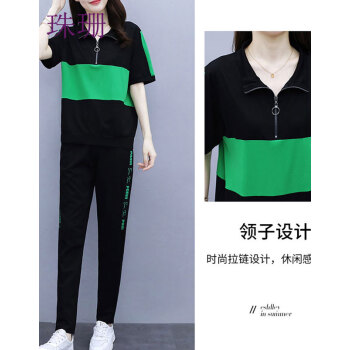 珠珊大码卫衣套装女2020休闲裤子女时尚新款上衣女装运动长裤洋气秋两件套 6109黑色 L(建议95-110斤左右) |