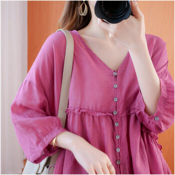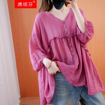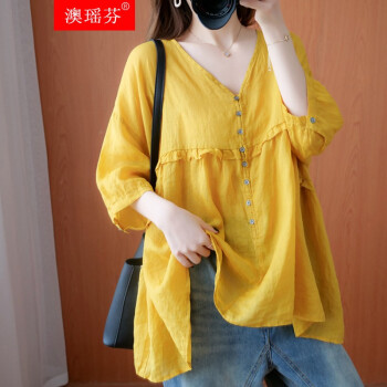 澳瑶芬 胖妹妹夏装棉麻休闲上衣大码女装胖mm纯色遮肚子显瘦加肥加大码胖人女装百搭衬衫 黄色 大码均码 (建议110-220斤) |