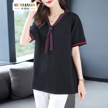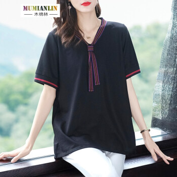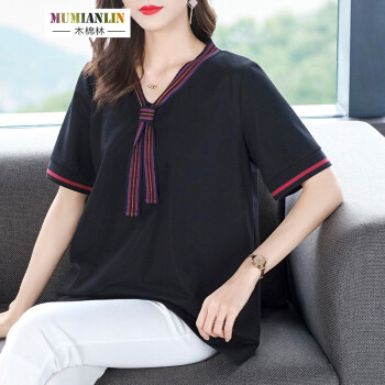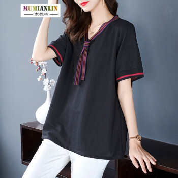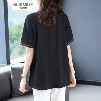木棉林大码女装显瘦减龄遮肉t恤2020年夏装新款胖mm宽松洋气中长款短袖上衣H202800 黑色 3XL建议160-180斤 |