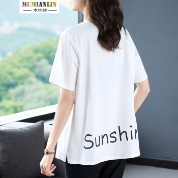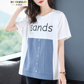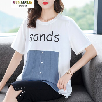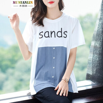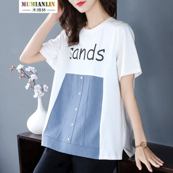 木棉林胖妹妹mm上衣女加大码女装2020年新款夏装200斤遮肚短袖洋气拼接中长款T恤女H202633 白色 2XL建议140-160斤 |