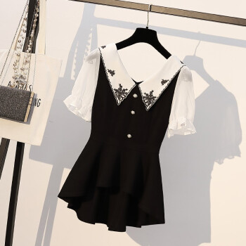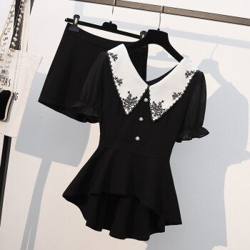 芷依丽 大码时尚套装女2020夏季新款韩版宽松显瘦胖MM短袖T恤女休闲阔腿短裤洋气减龄遮肚子两件套 黑色 L(建议96-115斤) |