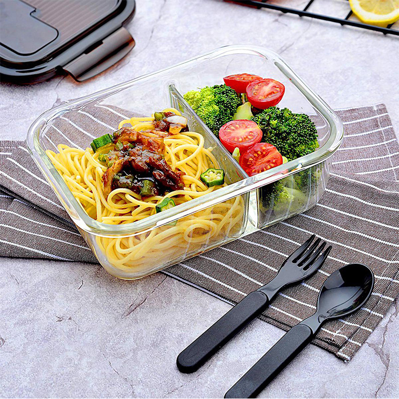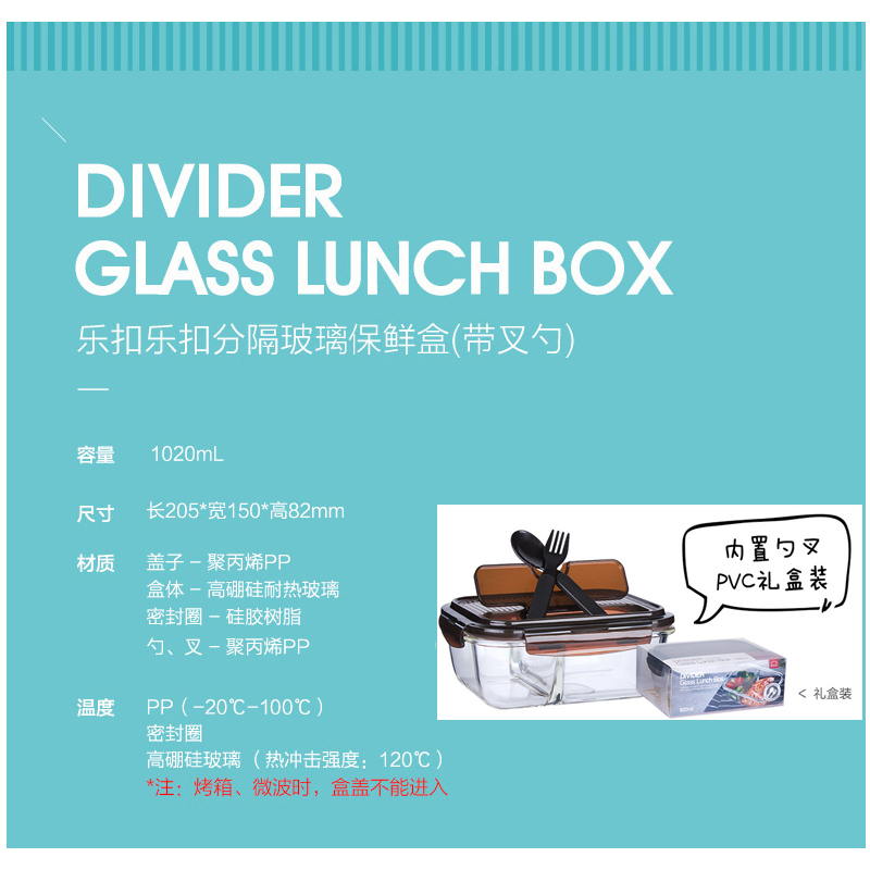 保鲜盒玻璃饭盒分隔便当盒微波炉专用碗加热上班族长方形 送时尚便当包【玻璃/透明】 |