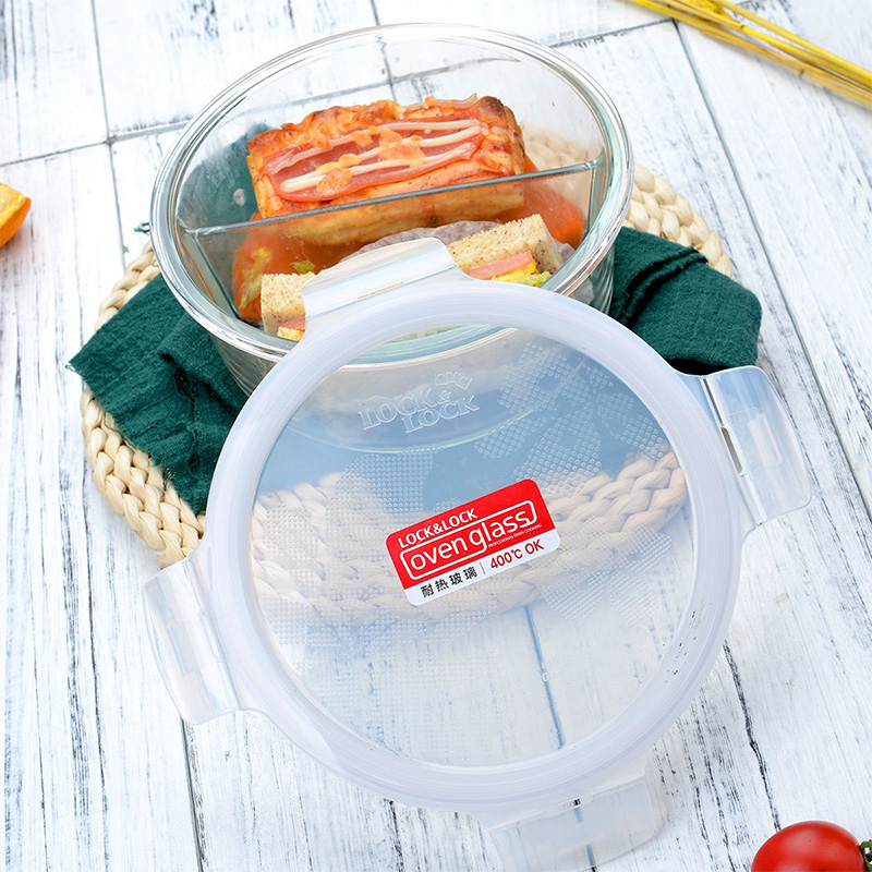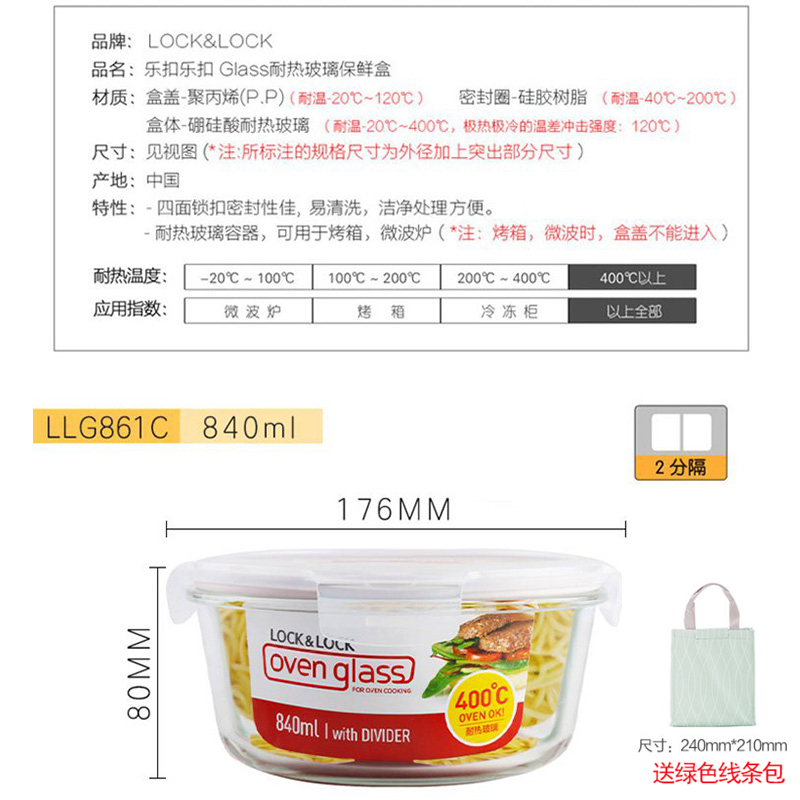 玻璃饭盒上班族微波炉专用加热保鲜盒分隔型便当盒 送时尚便当包【玻璃/透明】 |