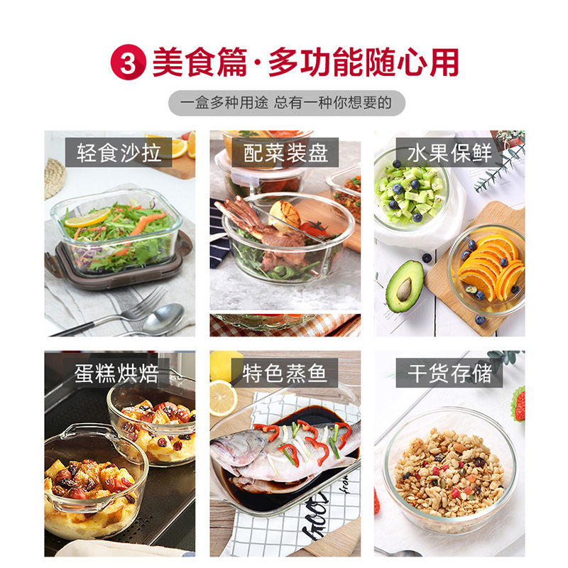 耐热玻璃保鲜盒玻璃碗便当盒饭盒微波炉餐盒保鲜碗 送时尚便当包【玻璃/透明】 |