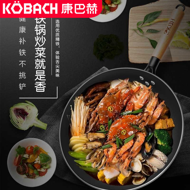 康巴赫炒锅32cm无涂层精制铸铁炒菜锅【铸铁/黑色】 |