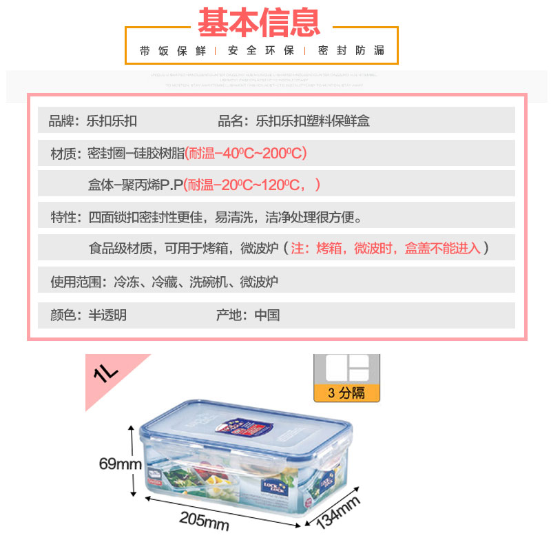 保鲜盒塑料储物盒 1000ML*2【塑料/半透明】 |