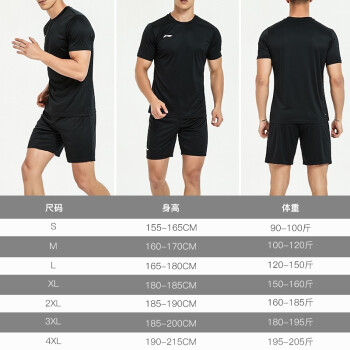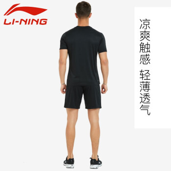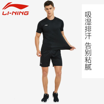 李宁(LINING)运动套装男夏季短袖篮球服运动健身速干衣羽毛球男士足球装跑步短裤训练衣休闲夏天春秋 黑色套装 L 【165-180cm】【120-150斤】 |