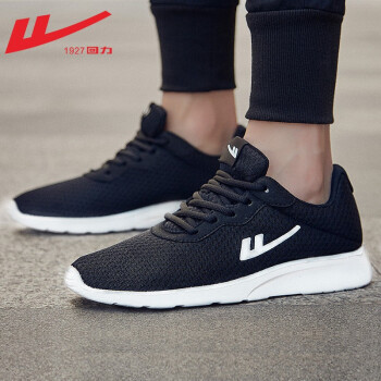 回力男鞋网鞋男休闲鞋男网面透气跑步鞋舒适柔软旅游经典款软底运动鞋子男 黑色HL6122 42 |