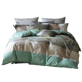 水星家纺出品 百丽丝 全棉格子四件套 纯棉床单被套 中性简约 星尚旋风 双人 1.8米床 220*240cm |