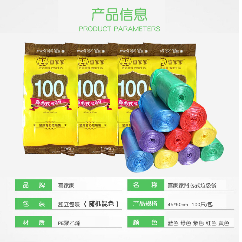 200只加厚垃圾袋【PE聚乙烯/混色100只+纯黑色100只】 |