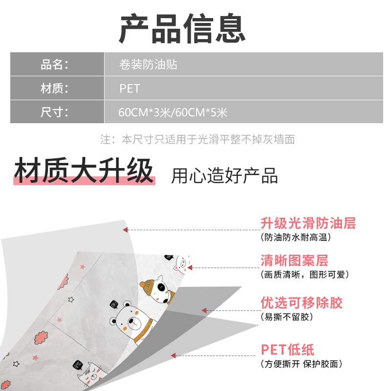 厨房防水防油贴3卷【PET/粉条(Y-1005)】 |