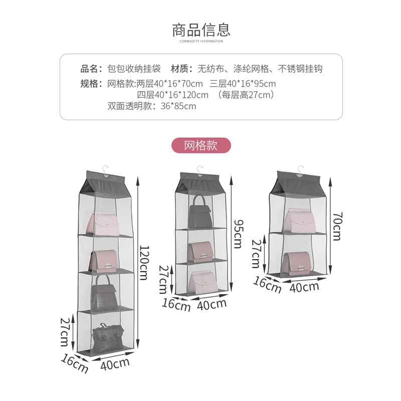 多层包包挂袋【无纺布+不锈钢挂钩/透明-黑色6格】 |