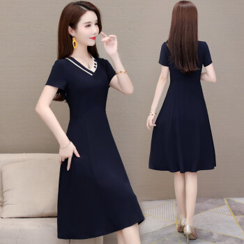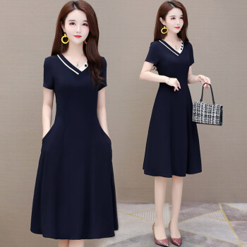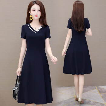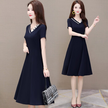 格素凡 连衣裙女夏装2020新款韩版V领雪纺气质女神遮肚显瘦中长款裙子收腰减龄蕾丝纯色碎花长裙女装潮 蓝色(KED91235 ) 女-L 建议体重105-115斤 |
