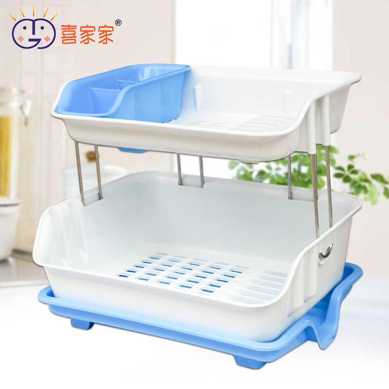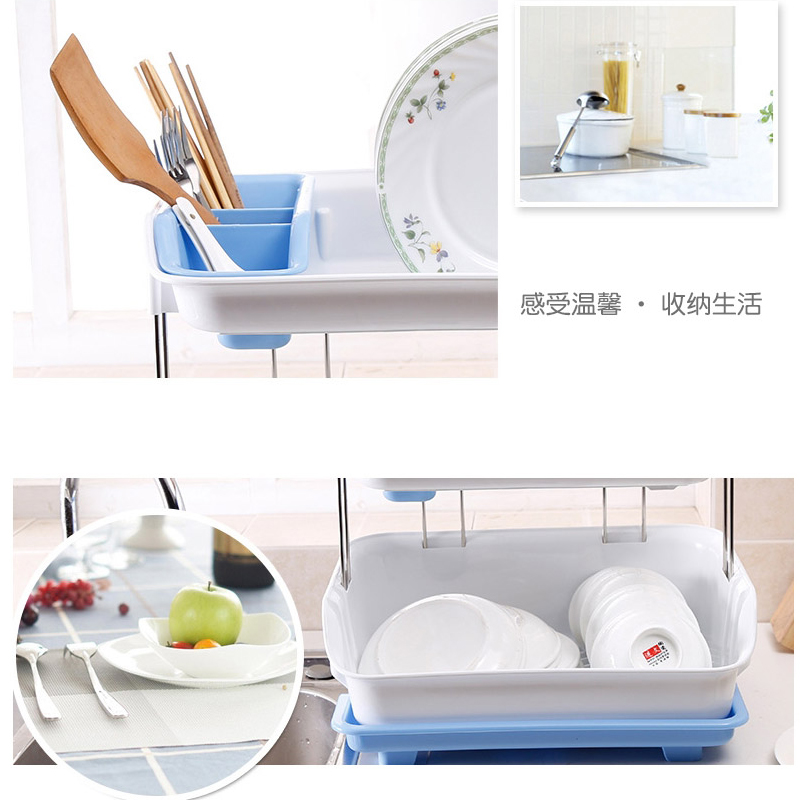 双层沥水碗碟架【PP+不锈钢/天蓝色】 |