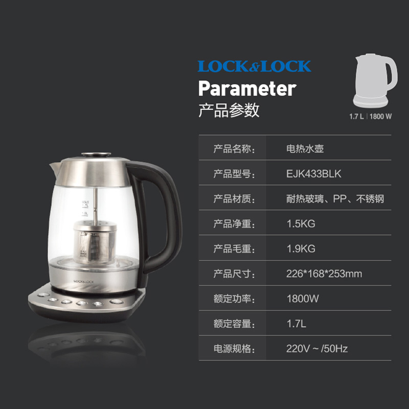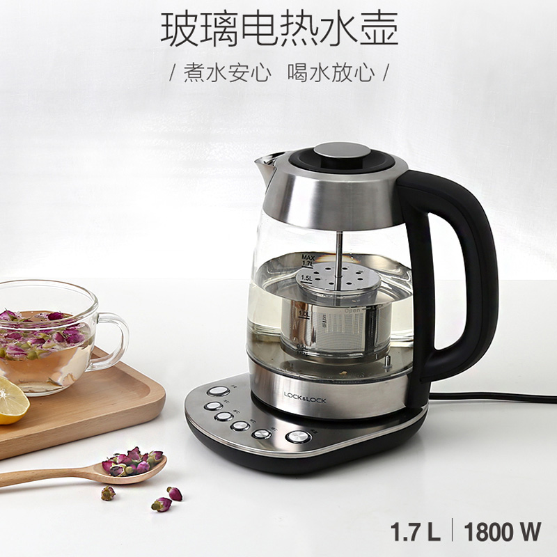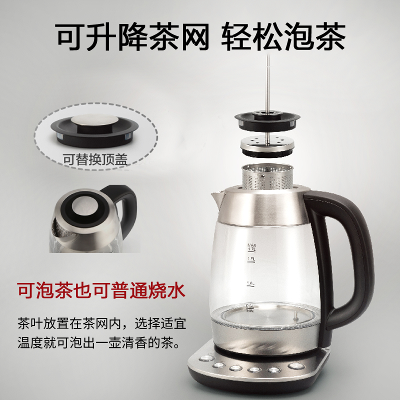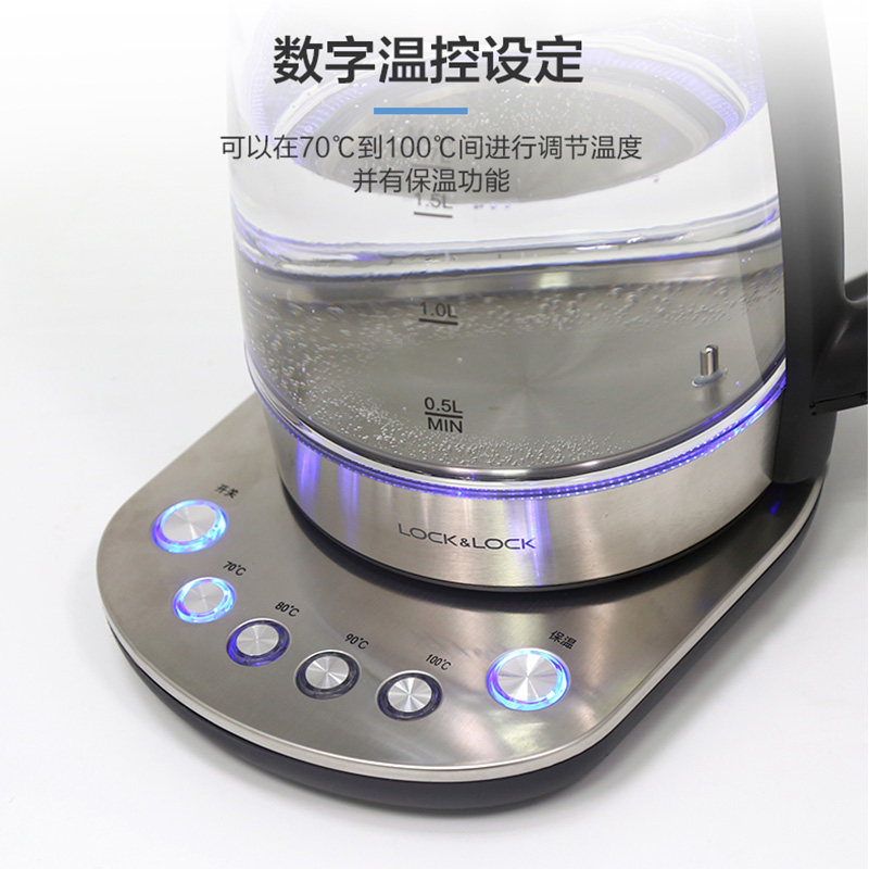 电热水壶透明玻璃蓝光数字温控家用煮茶开水烧水壶1.7L【玻璃/黑色】 |