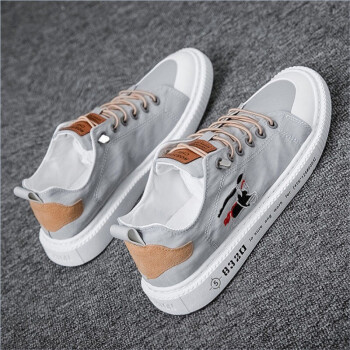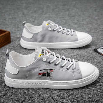 鞋子男2020春夏新款帆布男鞋时尚小白鞋男透气韩版休闲鞋男板鞋 灰色【刺绣款 偏小一码 建议拍大一码】 40 |