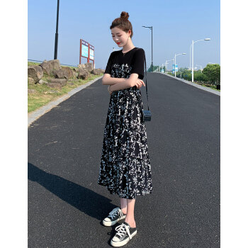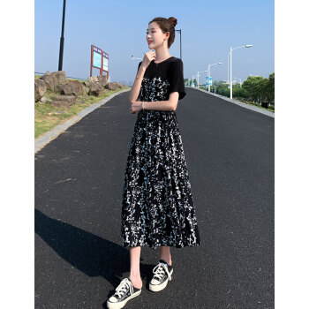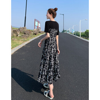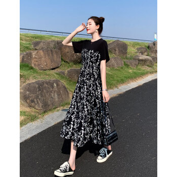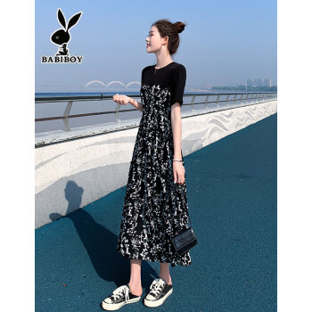 BABIBOY 连衣裙女2020夏季新款中长款时尚气质拼接碎花裙宽松洋气遮肚显瘦大码女装裙子女 图片色 M |