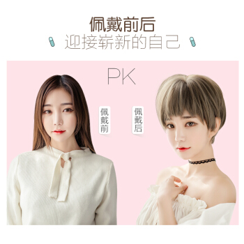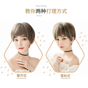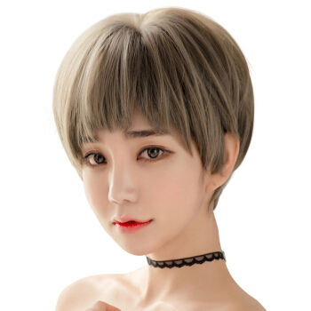 美元素 假发女狗啃式二次元刘海短发自然逼真奶奶灰不规则bobo头女士假发套 图片色(青木亚麻灰) |