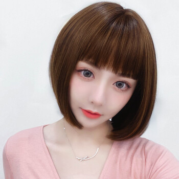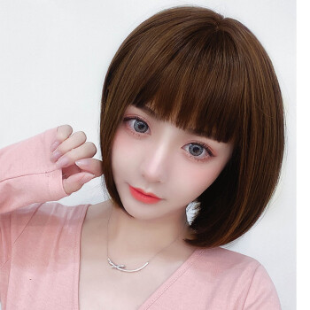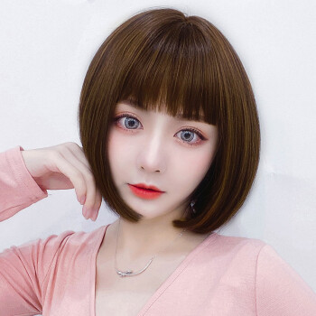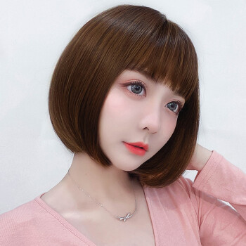 蔓茵假发女短发bobo头真发丝递针中分仿真空气刘海波波头自然逼真圆脸假发套网红学生黑 深棕色【仿真发丝】 |