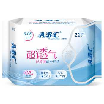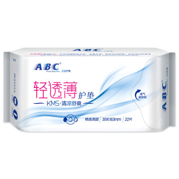 ABC KMS棉柔0.08cm轻透薄卫生护垫163mm*22片(KMS健康配方) (干爽舒适 轻薄透气)新老包装随机 |