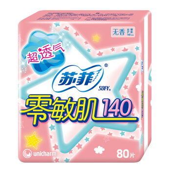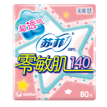 苏菲Sofy 零敏肌丝薄柔滑无香型超透气超薄护垫卫生巾140mm 80片 |