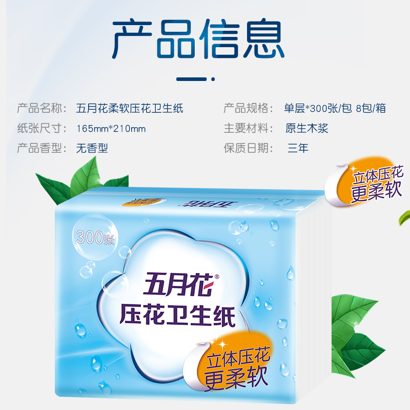五月花新型压花平板卫生纸300张8包 |