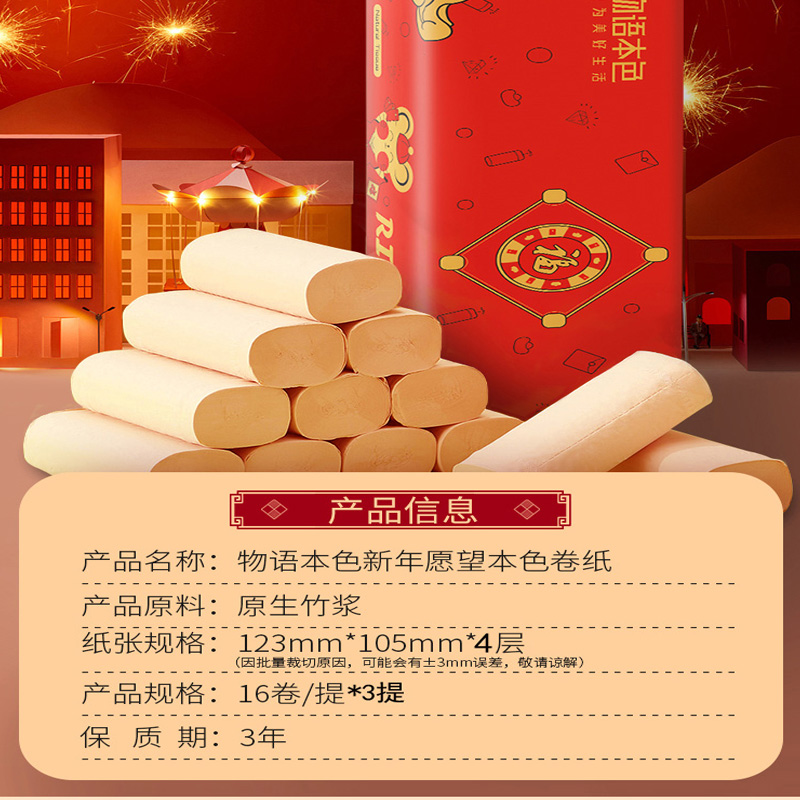 鼠年专属定制原生竹浆本色卷纸48卷/箱 |