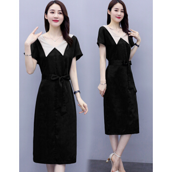 婪澈连衣裙女2020夏装新款韩版中长款连衣裙女气质系带高腰显瘦减龄长裙女潮 图片色 请拍正确尺码 |